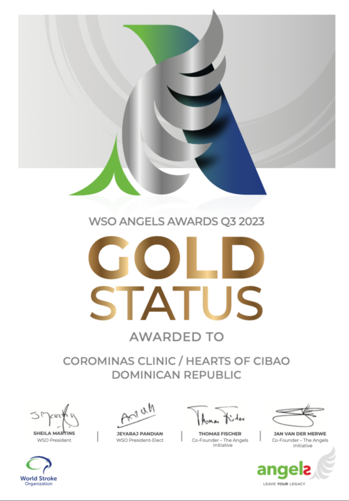 Más adelante, WSO ANGELS AWARD otorgó en novimiembre 2023 el Reconocimiento a la Eficiencia en el Tratamiento Oportuno de ECV, categoría Oro, por la calidad en la atención de pacientes con EVC en Santiago, República Dominicana.